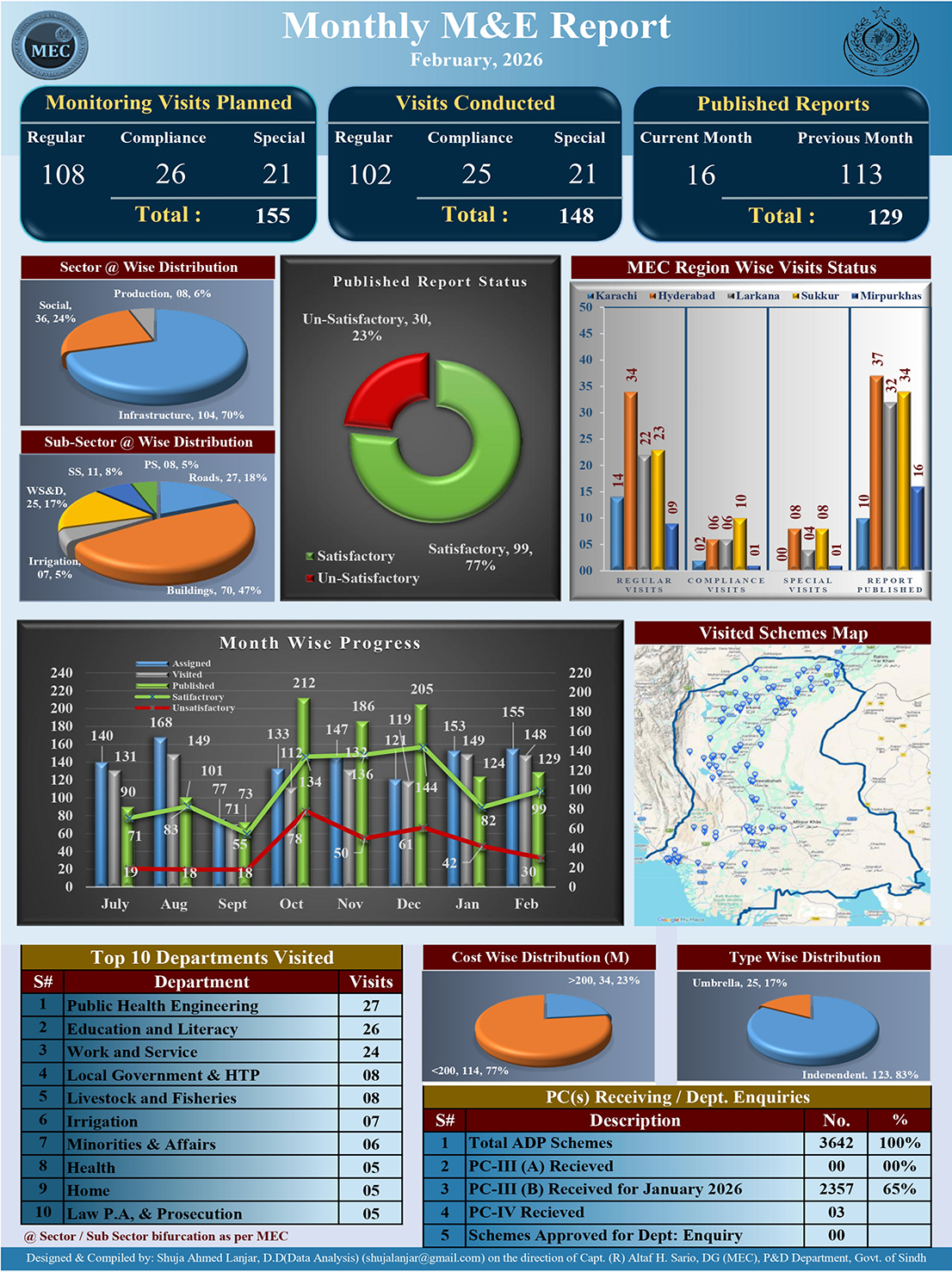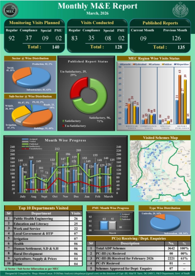 Monthly M&E Reports of Monitoring & Evaluation Cell.
